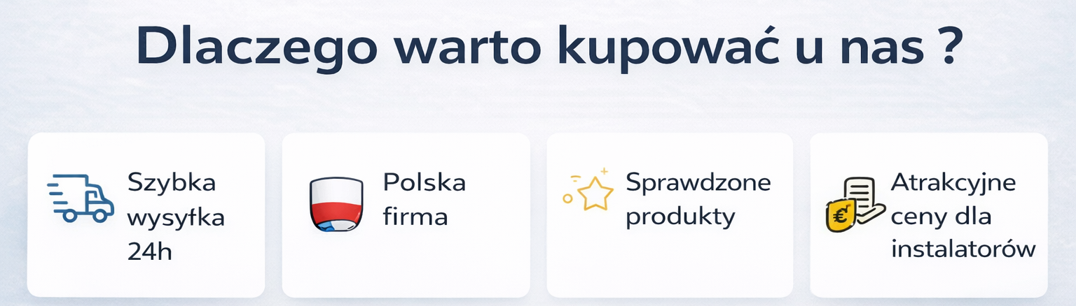 Oferujemy produkty sprawdzonych producentów, które sprawdzą się zarówno u profesjonalnych instalatorów, jak i osób wykonujących instalacje samodzielnie. Dzięki dużej dostępności towaru i szybkiej wysyłce możesz szybko zrealizować swoje zamówienie bez zbędnego czekania.